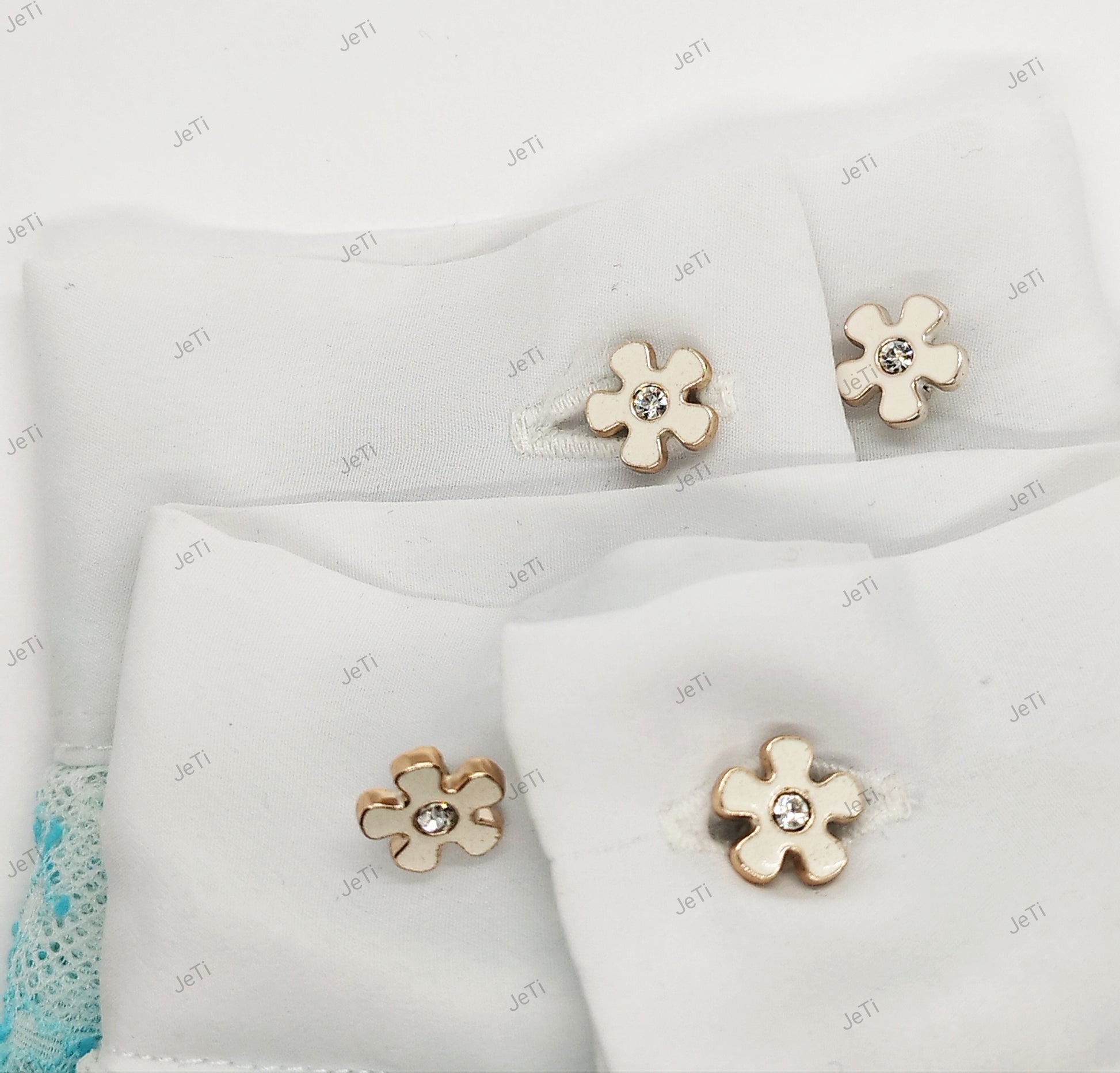 Expertly crafted from hand-sewn lace, our Blue Daisy cuffs add a touch of elegance to any outfit. Featuring flower-shaped buttons and an adjustable fit for wrists measuring 18.5 or 21 cm, these cuffs offer both style and comfort. Total length of 13 cm ensures a perfect fit.
